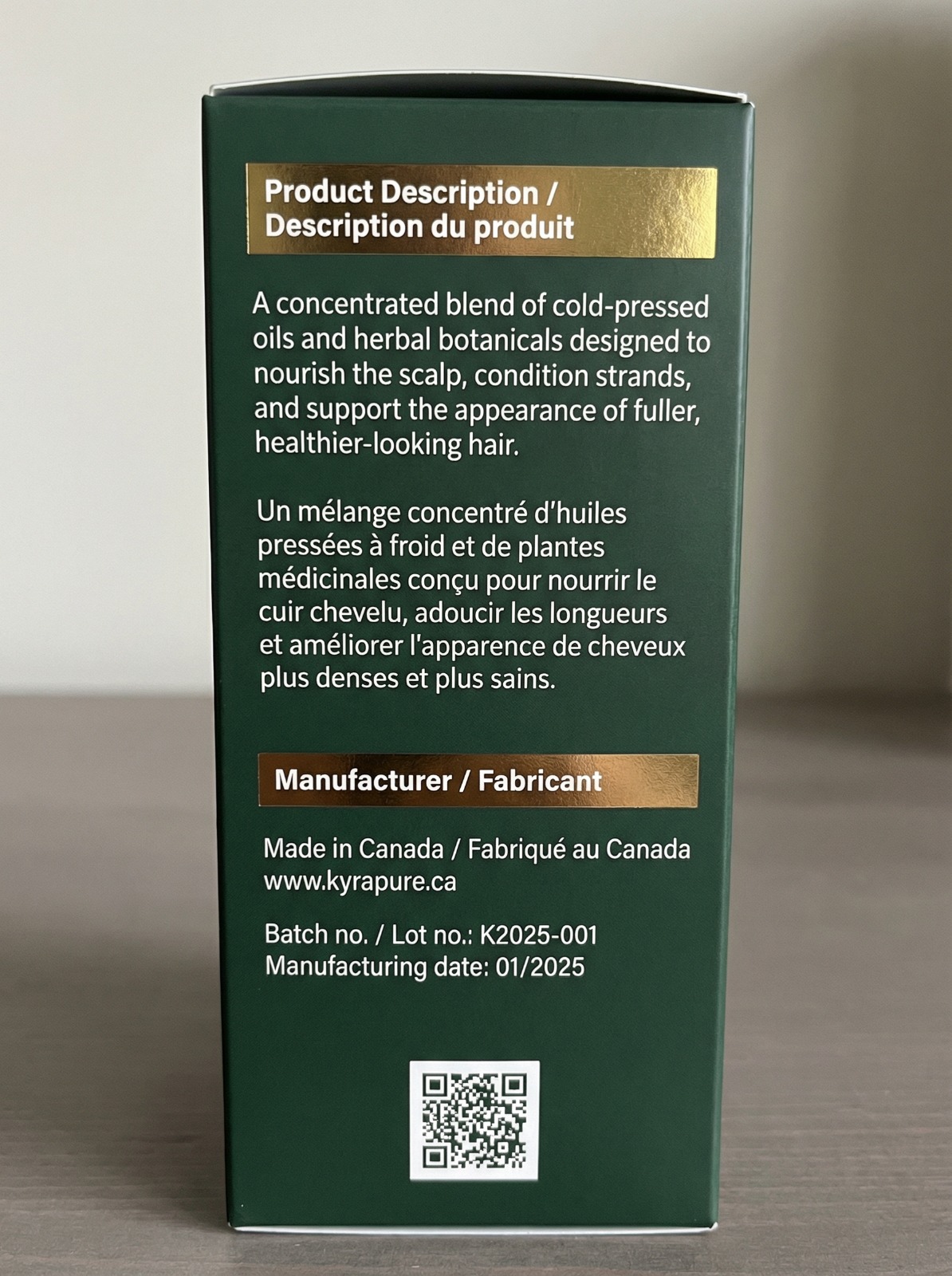 Kyrapure Hair Oil is a carefully crafted blend of cold-pressed botanical oils designed to deeply nourish the scalp and strengthen hair from root to tip. This lightweight yet intensive formula helps reduce dryness, improve hair texture, and restore natural softness and shine without leaving a greasy residue.